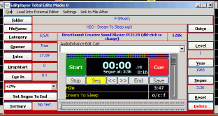 DPS has VU meters that can show the sound level of the track being played. This facility is added to Edit Player but can be turned off. The VU meter is located above the time display.